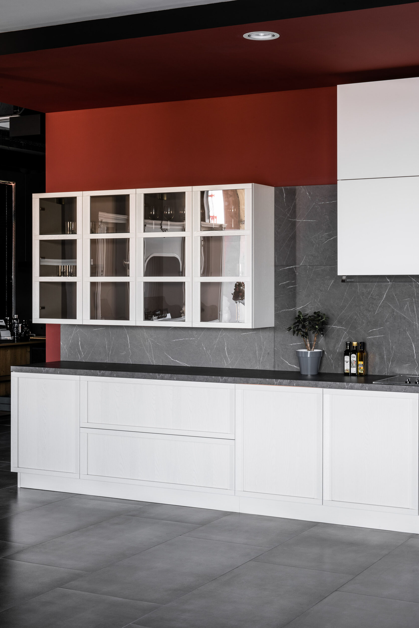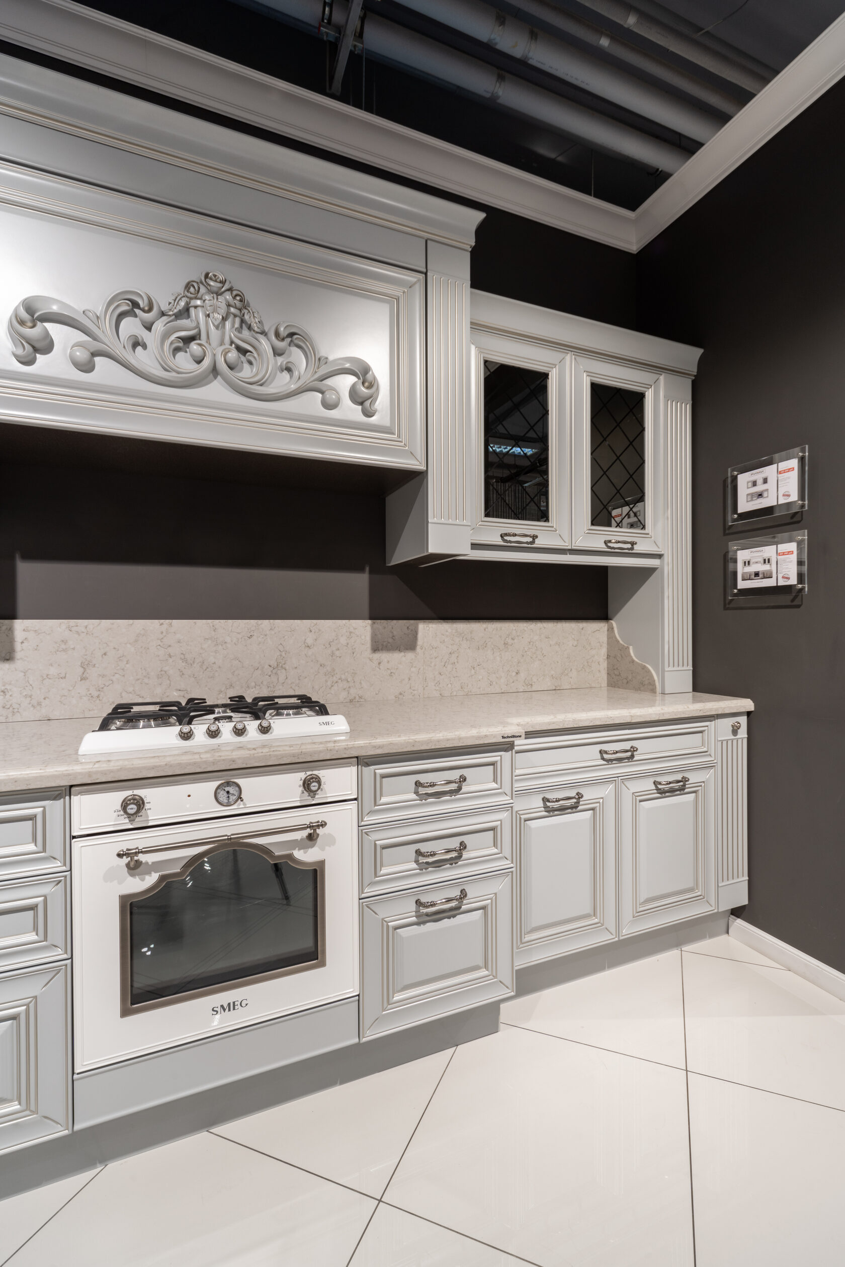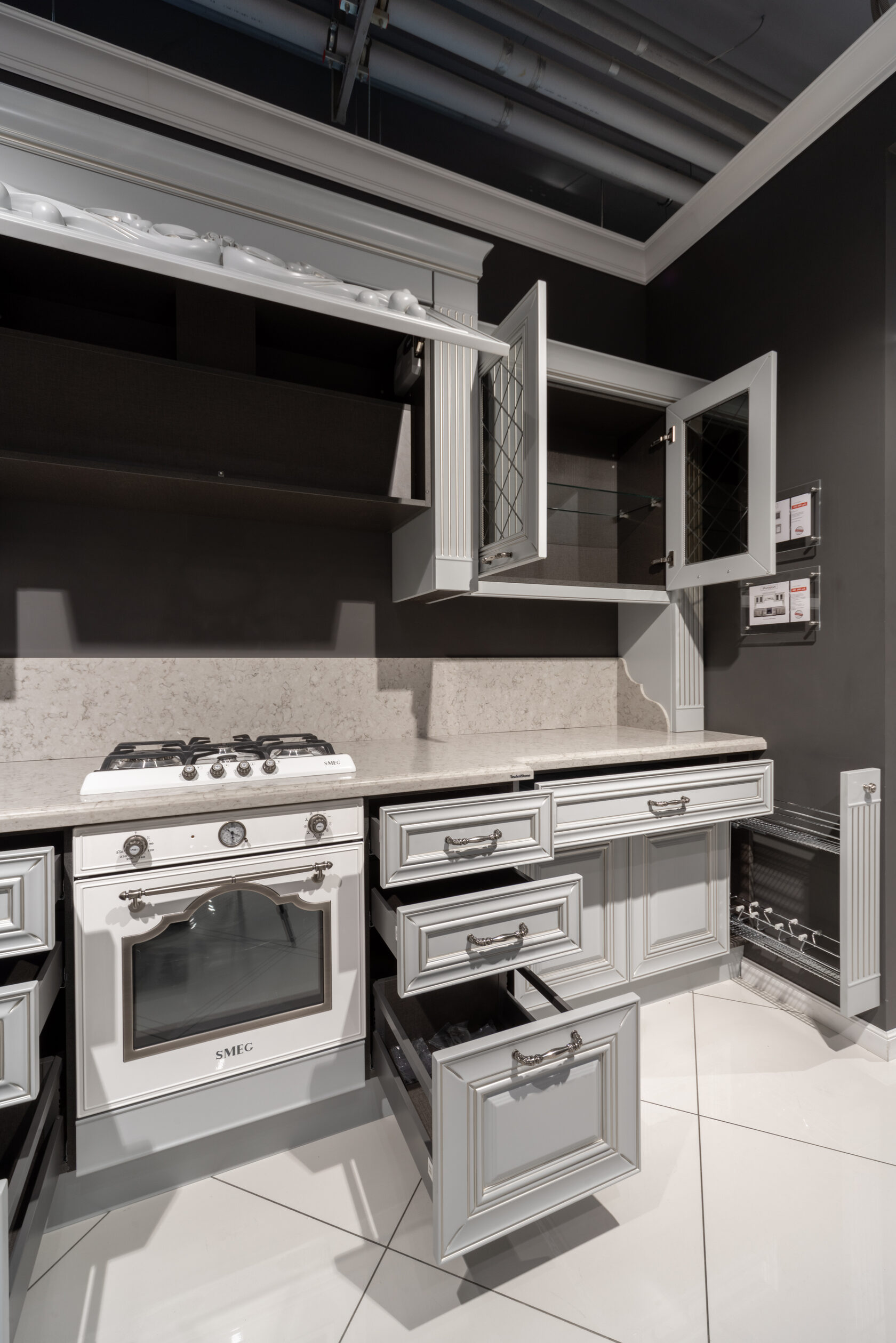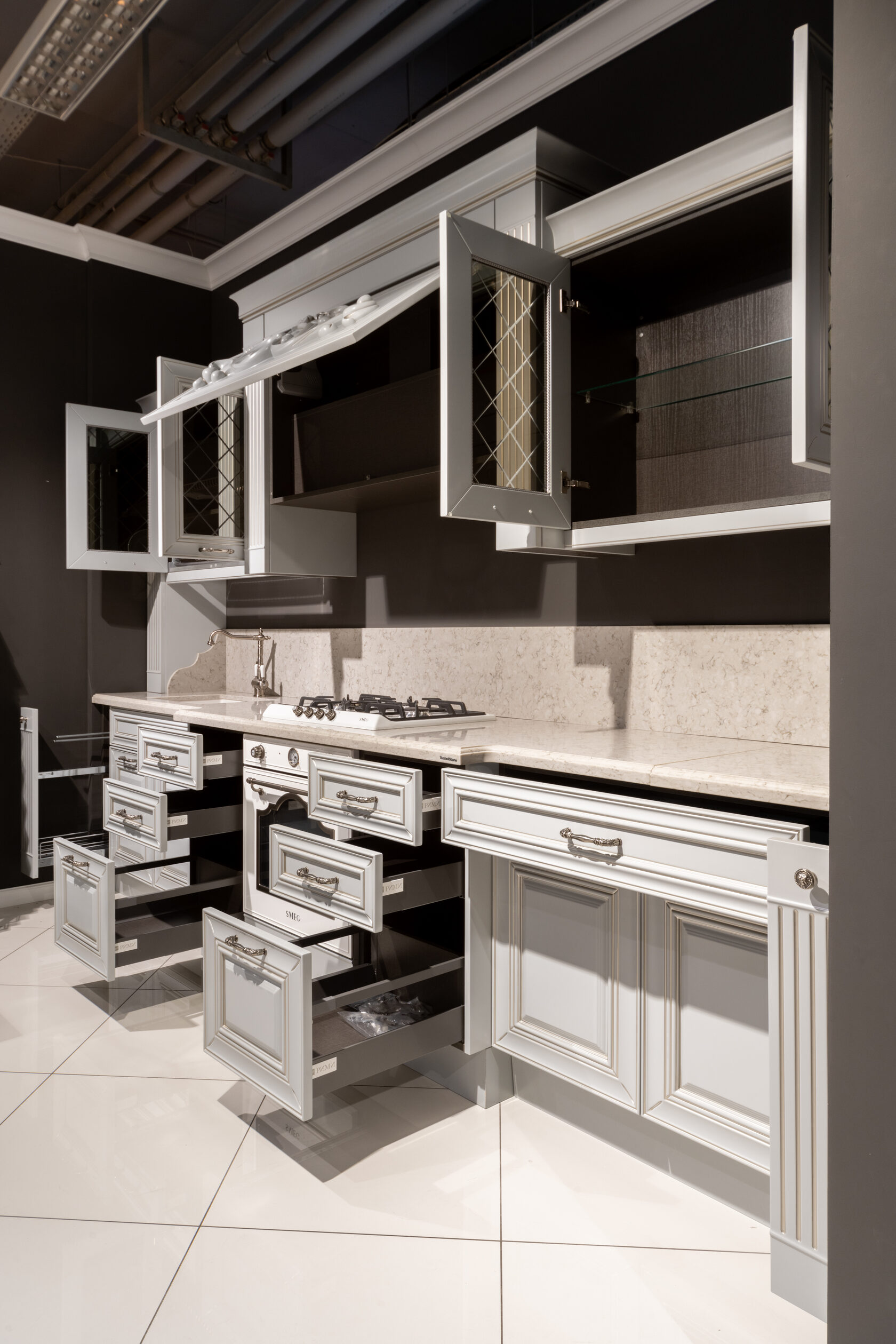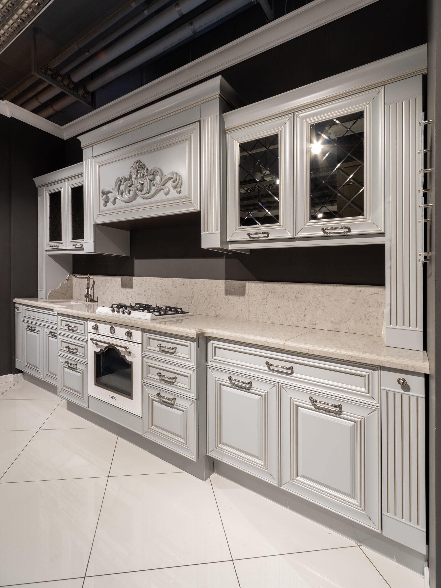 Фабиана – идеальное решение для тех, кто предпочитает классический стиль, но при этом не хочет отставать от современности. Она эффектно сочетает в себе элементы строгой, сдержанной классической традиции, которые гармонично взаимодействуют с современными материалами и простыми формами. Первое, что бросается в глаза при взгляде на эту кухню — четкие и лаконичные формы, базирующиеся на предельно простой геометрии, но при этом уникальный 4-х уровневый фасад в сочетании со скрытой интегрированной ручкой придают модели утонченность, внутреннюю сдержанность, которая и отличает настоящую роскошь от показной.