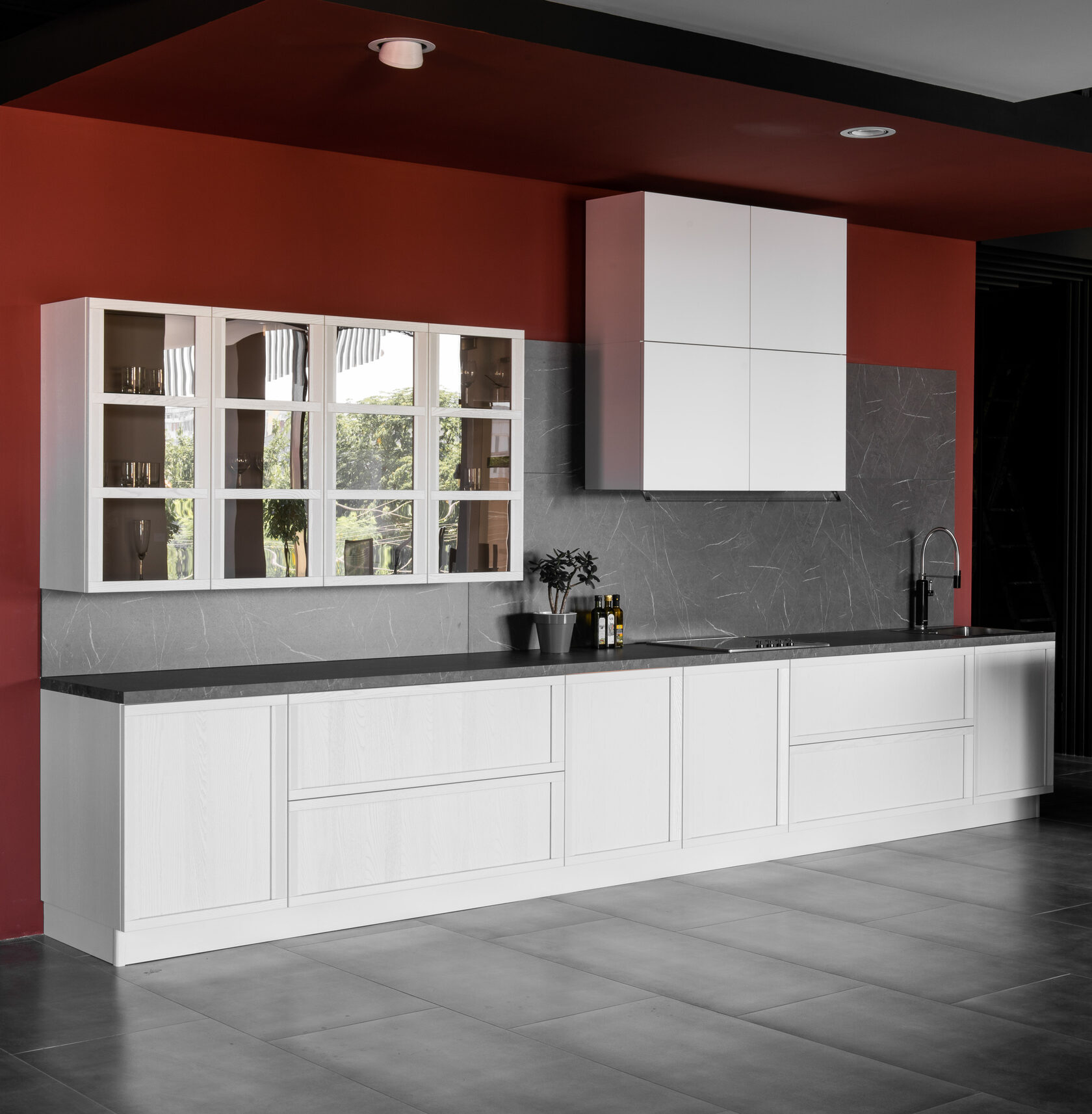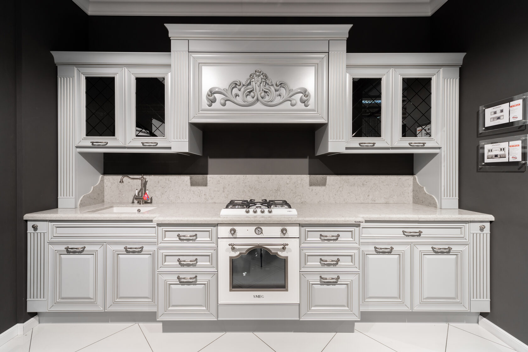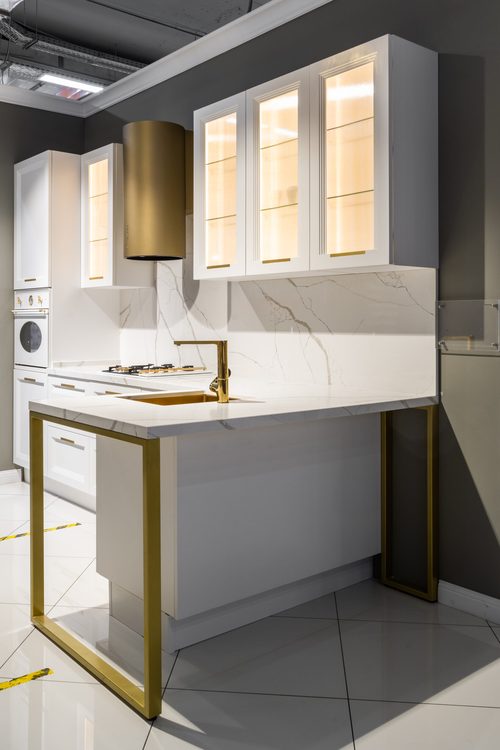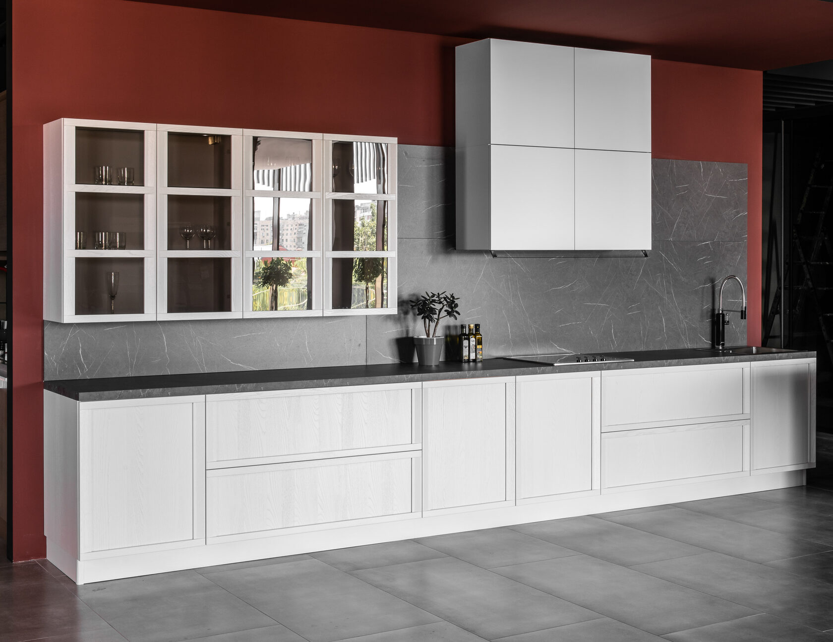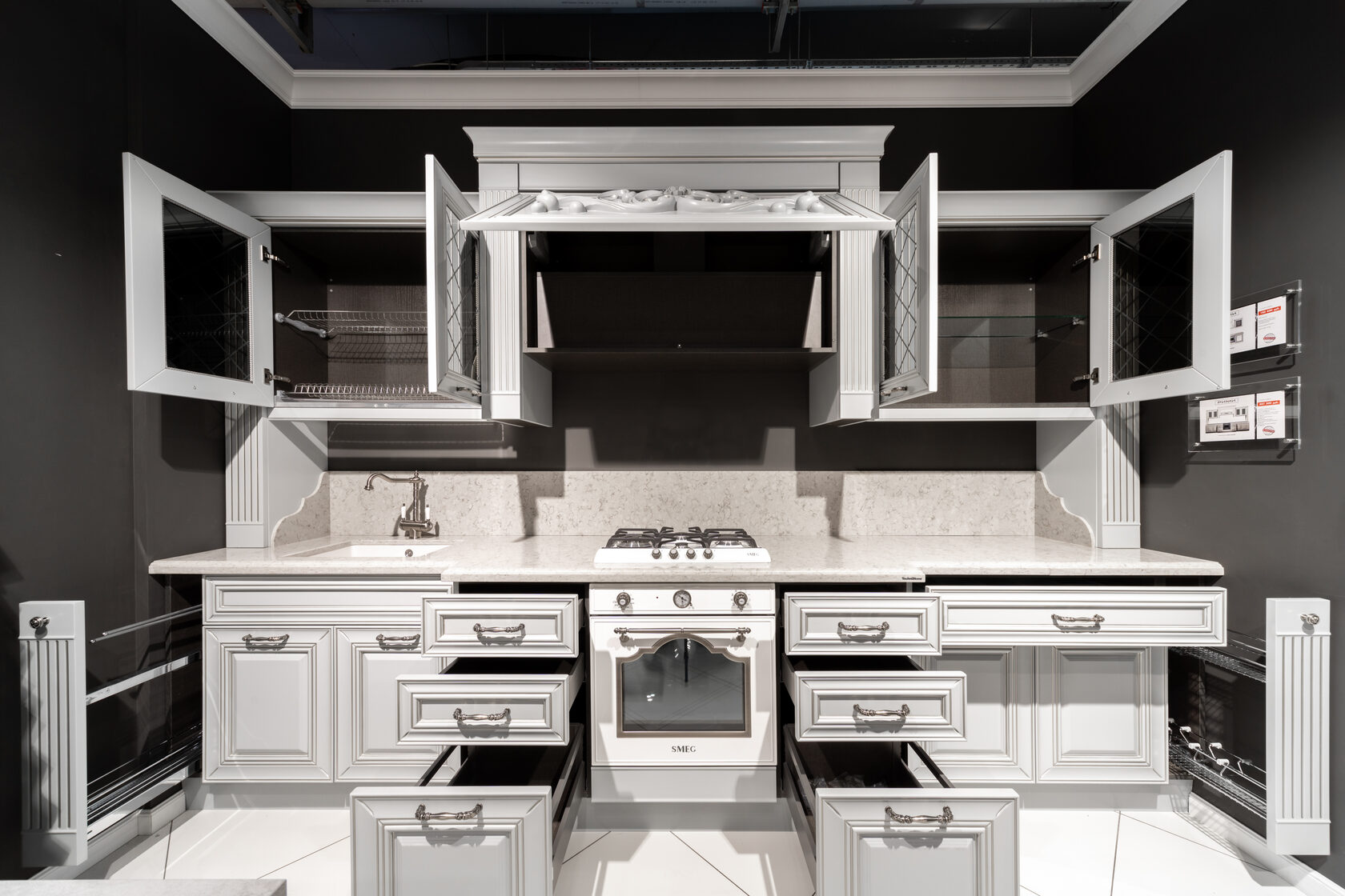 Фабиана – идеальное решение для тех, кто предпочитает классический стиль, но при этом не хочет отставать от современности. Она эффектно сочетает в себе элементы строгой, сдержанной классической традиции, которые гармонично взаимодействуют с современными материалами и простыми формами. Первое, что бросается в глаза при взгляде на эту кухню — четкие и лаконичные формы, базирующиеся на предельно простой геометрии, но при этом уникальный 4-х уровневый фасад в сочетании со скрытой интегрированной ручкой придают модели утонченность, внутреннюю сдержанность, которая и отличает настоящую роскошь от показной.