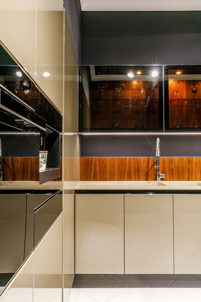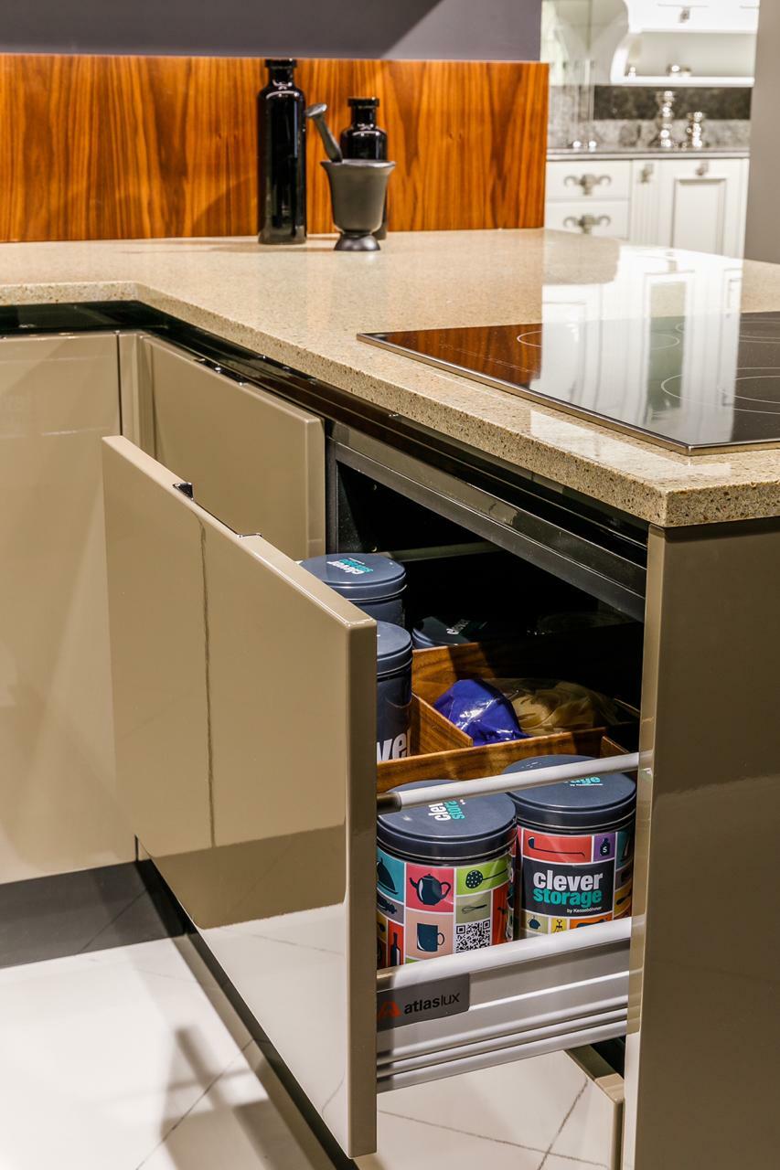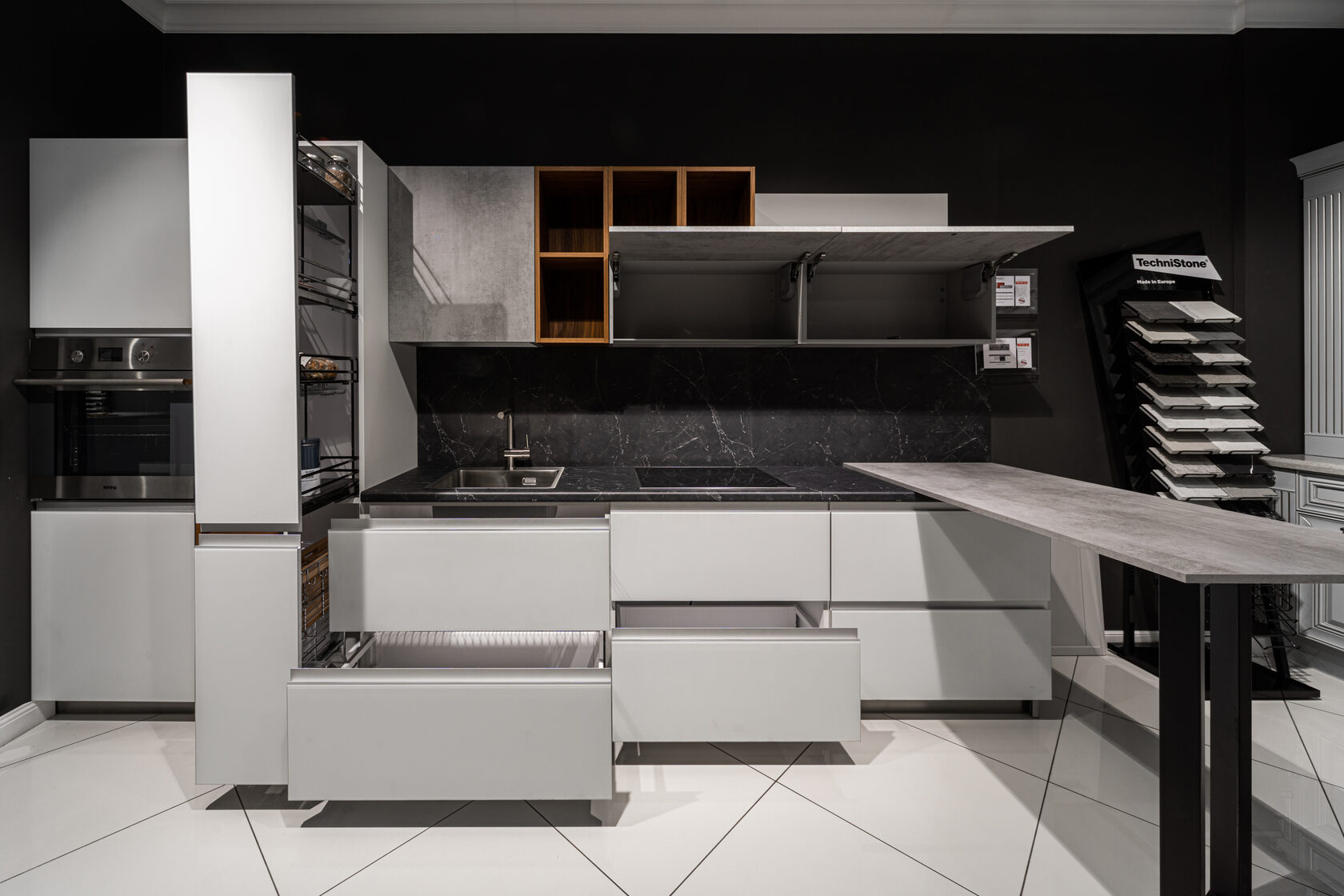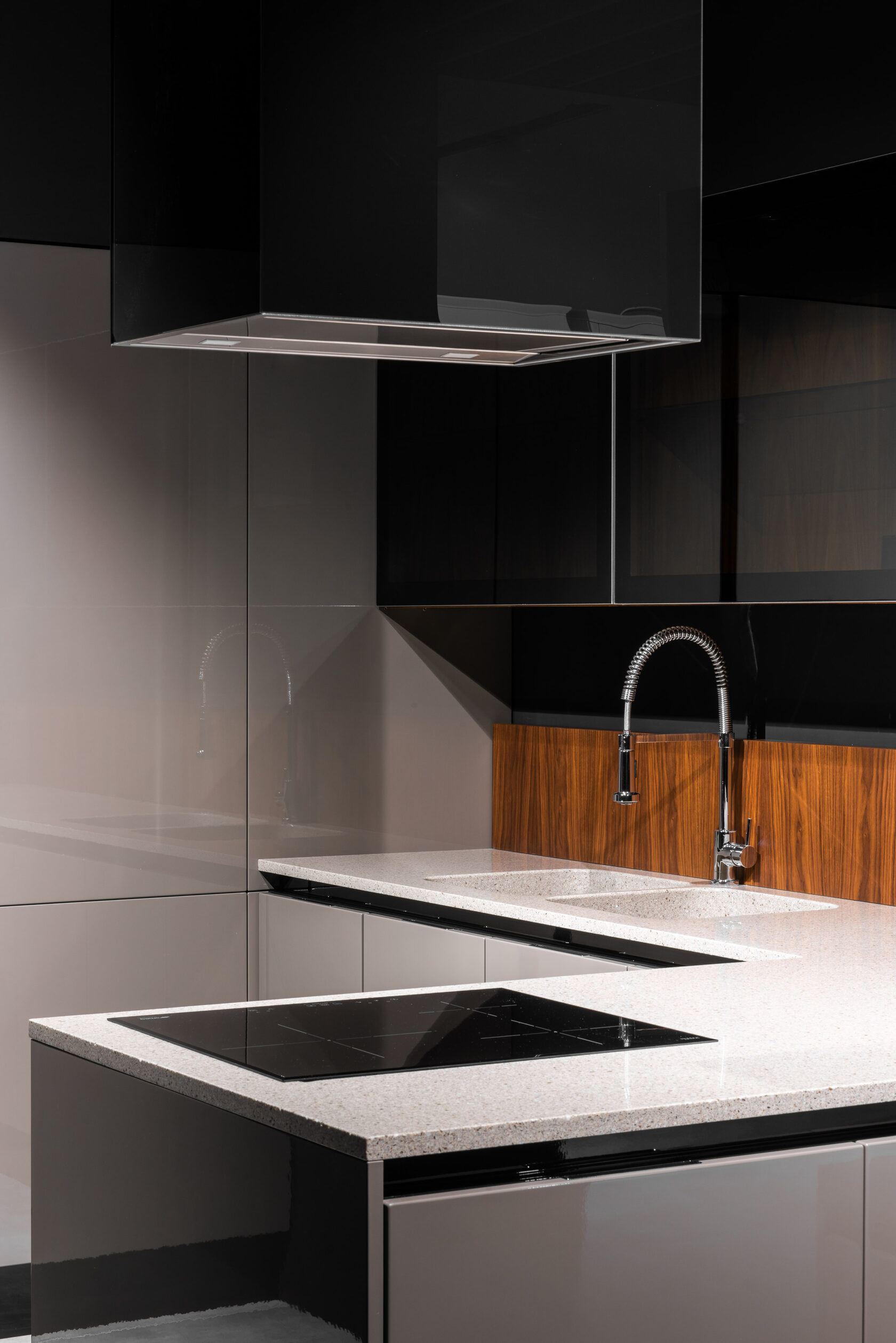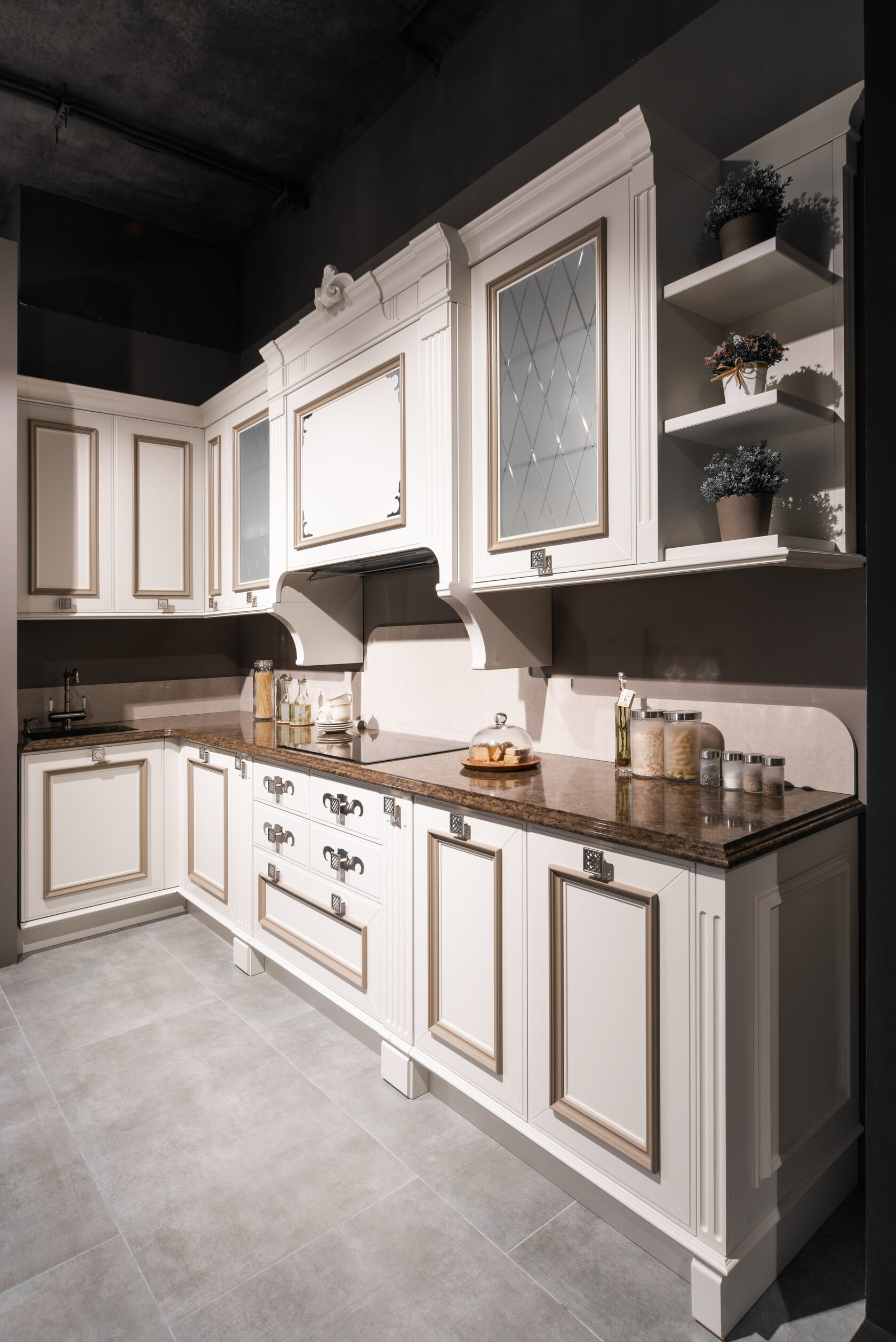 Фабиана – идеальное решение для тех, кто предпочитает классический стиль, но при этом не хочет отставать от современности. Она эффектно сочетает в себе элементы строгой, сдержанной классической традиции, которые гармонично взаимодействуют с современными материалами и простыми формами. Первое, что бросается в глаза при взгляде на эту кухню — четкие и лаконичные формы, базирующиеся на предельно простой геометрии, но при этом уникальный 4-х уровневый фасад в сочетании со скрытой интегрированной ручкой придают модели утонченность, внутреннюю сдержанность, которая и отличает настоящую роскошь от показной.